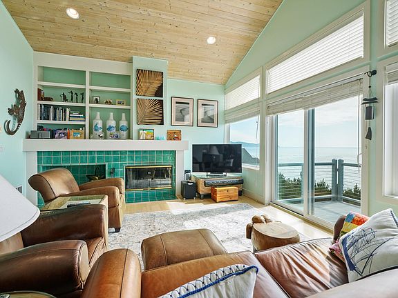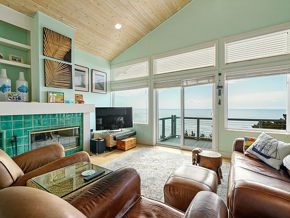 AWE INSPIRING OCEANFRONT VIEW because no one can build in common area between you and the ocean. Beautifully remodeled with whitewashed knotty pine plank ceilings,wood look lam floors, maple hardwood stairs, updated appliances. Soaring vaulted ceilings, skylight, 2 master suites with fabulous ocean view, jetted tub. Open kitchen, greatroom with woodburning fireplace & built-ins. The Capes gated community just 70 mi to Portland.