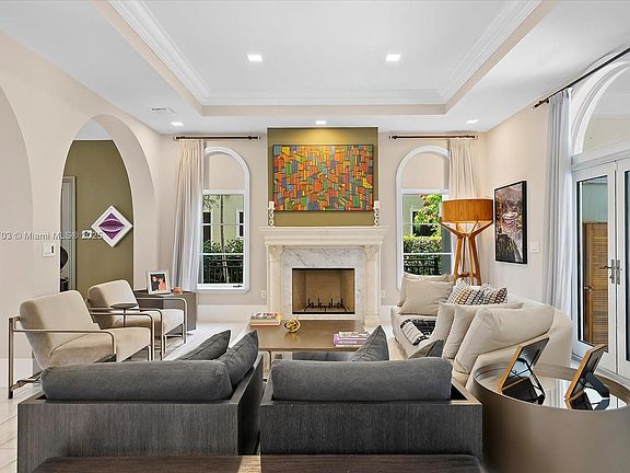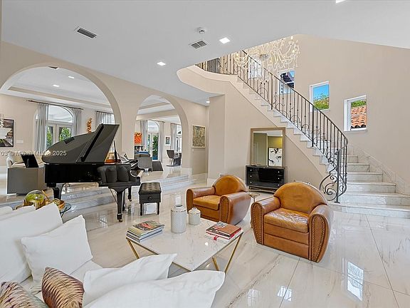 Step into luxurious waterfront living with no bridges to the bay and direct ocean access. This elegant two-story residence, fully updated in 2022, is set on a private cul-de-sac with 108 ft. of water frontage. A grand foyer opens to formal living and dining rooms, a spacious eat-in kitchen, and a family room. Features include a guest and maid’s room, two-car garage (one with lift), and laundry room. Upstairs offers four ensuite bedrooms, including the primary suite with office and terrace. Outdoor highlights: summer kitchen, heated saltwater pool, cabana bath, dock with lift, jet ski floats, and half basketball court. Located in Islands of Cocoplum with 24/7 security, clubhouse, and tennis courts.