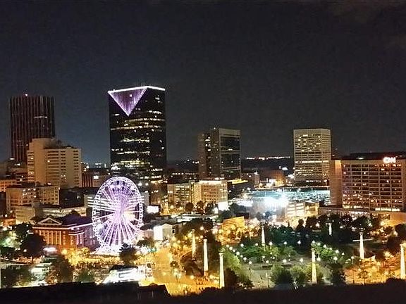 Stunning view from every room! 2bed/2bath corner unit. Split bedroom plan. Hardwood through out, granite counter tops, floor to ceiling windows, custom build closet and much more! Two assigned covered parking spaces in excellent location. Amenities include: roof top pool, workout room, large green court yard on top of the garage and dog walk, 24 hour concierge. Walking distance to the Dome, Centennial Park, Aquarium, Coca Cola museum, CNN, Marta and only minutes from Midtown.