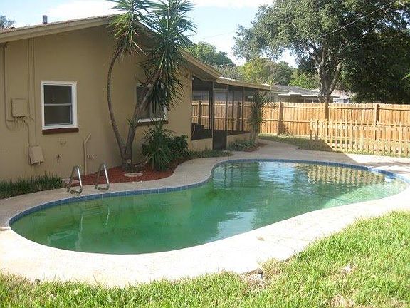Unit in a duplex. Separate entrance and back yard. The pool belongs to this unit only.Freshly painted 3-1. New windows, new AC, new floors. Great location close to the beaches. Remodeled bathroom. Washer/Dryer hook ups. Tenant pay $130 each month for water.