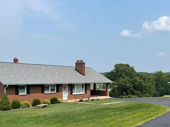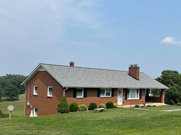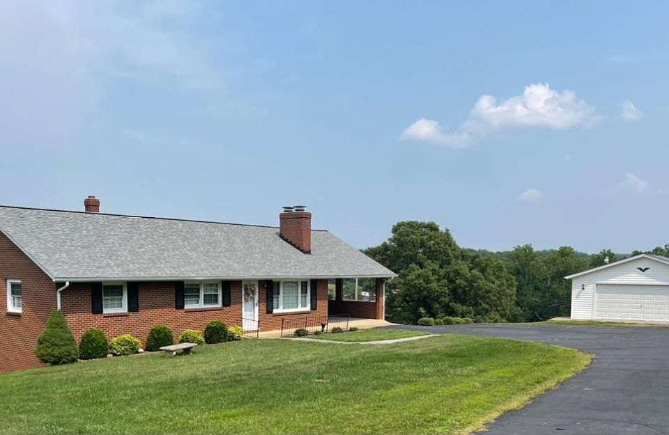 Lovely brick ranch, nicely secluded down long fence-lined driveway onto a private 1.42 acre lot with attached garage, detached garage, and lovely views of rolling hillsides! You'll be honored to make this your next HOME! Custom-built, rock solid construction, this brick home is timeless, with hardwoods, large entertaining spaces, and two kitchens. Step into a lovely living room with fireplace, and relax while entertaining guests. Spacious kitchen with lots of cabinets and counter space, plus sunny breakfast area just steps from the carport for ease of bringing in groceries. Carport would be a tranquil space for relaxing after a long day while enjoying the views. Custom niche in hallway ideal for collectibles. Large full bath, double vanity, three spacious bedrooms complete the main level. Terrace level features large windows for natural light. Huge family room, kitchenette, has long been a favorite space for Christmas dinners, and canning garden veggies. Storage, garage too.