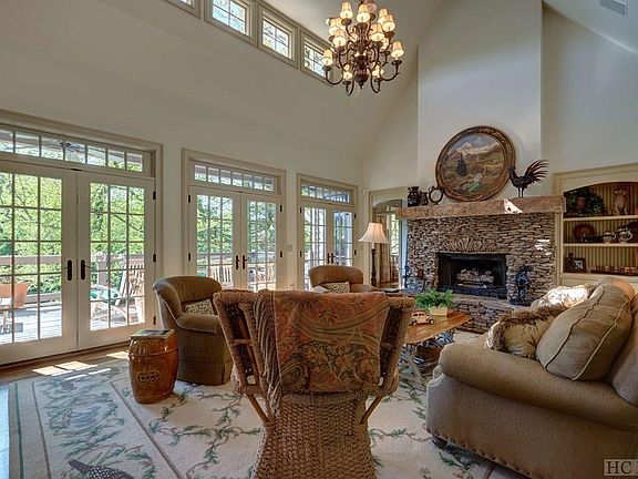 This beautiful Cullasaja Club custom home is perfectly sited lakefront on Lake Ravenel and features it's own private dock for canoeing or kayaking. Enjoy the lake views from both open and covered/screened porches and from virtually every room. It is conveniently located near the gatehouse and a short drive to the Clubhouse and Club amenities. This home lives large with four bedroom suites and two half baths. The main level includes expansive open living spaces, fireplace, a recently updated chef's kitchen and master suite with adjoining sunroom. The upper level includes 2 bedroom suites and a loft area overlooking the living area. The lower level includes a large den with fireplace which opens to the screen porch, a bedroom suite and a bar/entertaining are that now includes billiards. There is a semi-detached two car garage with a finished bonus space above, perfect for gaming. The home enjoys a great deal of privacy and is beautifully landscaped. Membership in the Cullasaja Club, with its newly renovated and expanded Clubhouse and First Class amenities, is available but not required. Membership by invitation.