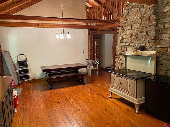 Rare hidden secluded treasure! Real log cabin with 5 bedrooms and 2 full baths sitting on 29+/- Acres. Beautiful knotty pine floors throughout. Cathedral ceiling and a catwalk that overlooks the kitchen, dining, and spacious living room. Gorgeous rock chimney centrally located. Unique home sitting on a mostly fenced, 2 -gated piece of property that has a 2-stall barn & tack room, and old shop/storage building. Needs some repairs and price is set to sale as is.