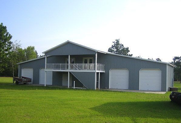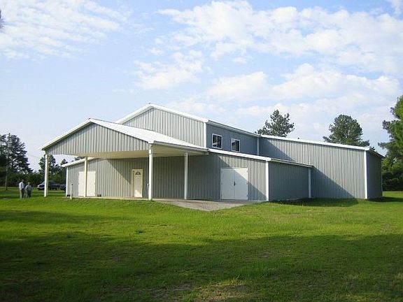 Endless possibilities. 6,450 square foot metal building perfect for building contractor or any tradesman that requires a lot of warehouse space, office space, and/or living space, all in the same structure, on 2.2 acres of cleared land. 4500 square feet on the lower level accessible by 4 10x10 OH garage doors that lead to 15 x 30 bay areas. Two additional 15 x 30 bays accessible from 6’ entry doors. A 30 x 60 center storage area with 8’ ceiling. Second floor is 1950 square feet and decked with exterior windows ready for your build-out as desired. Perfect for office space or living space. 10 x 30 covered deck on second floor area. 20 x 60 concrete pad in front of the building with a 20 x 30 roof – 10’ clearance. 90 x 10 concrete pad in rear of building. A single wide mobile home is also included in the sale as living quarters and/or rental space. Another single wide mobile home for storage as well.