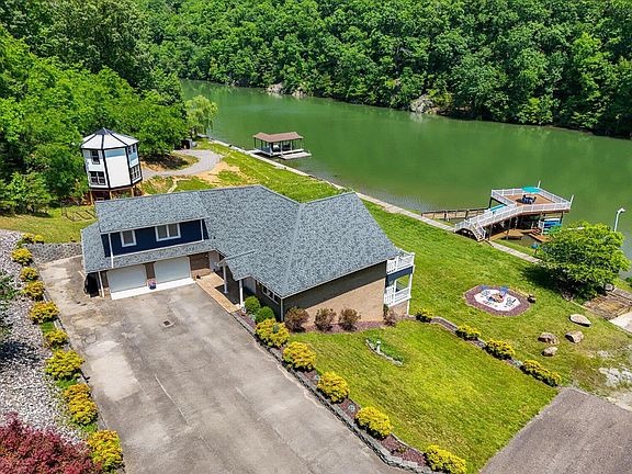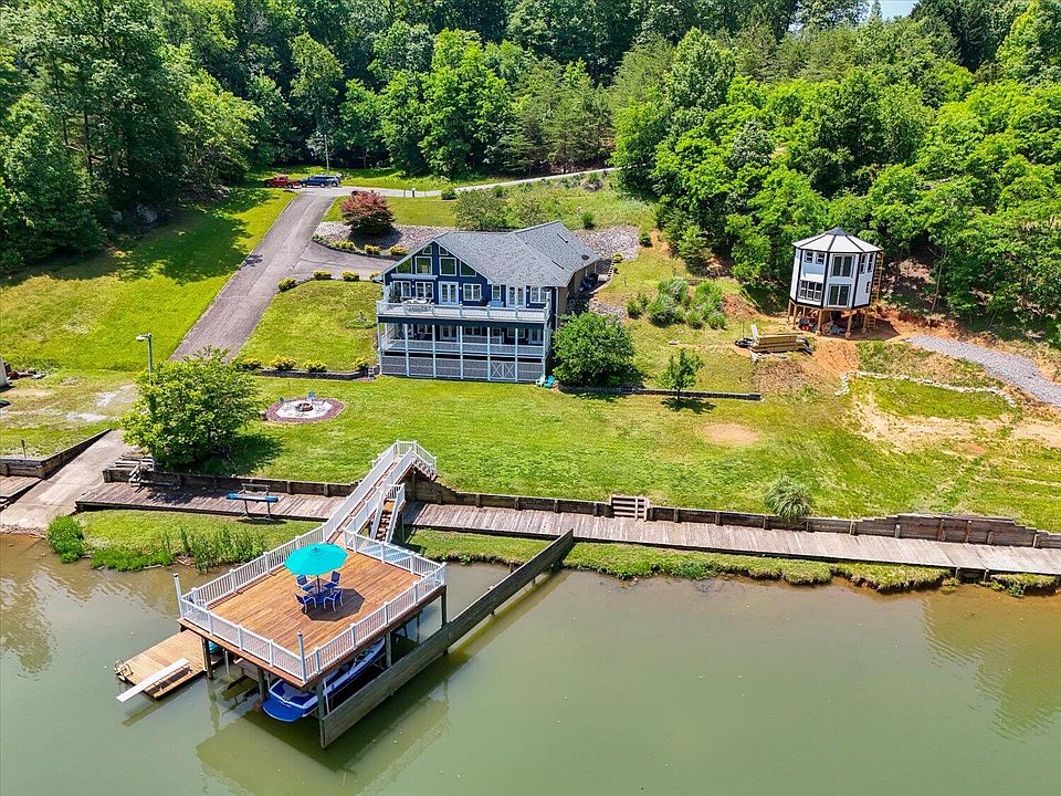 Stunning lakefront home just 15 minutes from Roanoke Memorial Hospital and S. Roanoke amenities. Featuring easy one level living with large 2 car garage and expansive two-tier deck on an unbelievable lot! Spacious party dock with two boat lifts provides plenty of space to relax and entertain! Entry level boasts cathedral ceilings with tons of natural light, open kitchen and great room, large primary suite, formal dining room, breakfast nook, bonus room, and laundry. Downstairs, you'll find two more primary suites, a well appointed rec room, plus additional work room with storage. Newer roof (2020), HVAC (upper unit 2022) and decking (2015). If you're looking for easy lake living with all the conveniences of Roanoke, don't miss this great home!