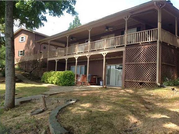Lake home with great year round water featuring 4 bedrooms and 3 baths . Large living room with view of the water. Has a Commercial cook stove that is gas and electric. The master bedroom has French doors with a view of the lake. 2 Bedroom and 2 baths on the main level and 2 bedrooms and 1 bath in the walkout basement. Gentle sloping to the water to the large covered dock that is designed for a pontoon boat, bass boat and sea dos with lifts. It has 200 feet of shore line with 12 inch blocks that are filled with re-bar and concrete. The home has a wrap around porch for entertainment that is connected to the large work shop. Work shop is 2 story and has a wench to help lift heavy items to the upper story. Owner has the workshop set up as a wood working shop with central vacuum and air compre
