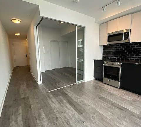 Experience modern living in this brand-new, stylish 1-bedroom, 1-bathroom condo in Toronto's vibrant Liberty Village/West King West neighborhood. Thoughtfully designed, this unit offers a smart and functional layout featuring a spacious bedroom, sleek laminate flooring, and floor-to-ceiling windows that flood the space with natural light and offer unobstructed views. The contemporary kitchen boasts quartz countertops, elegant cabinetry, and full-sized built-in/integrated appliances, perfect for both everyday living and entertaining. Ideally located just steps from shops, cafes, restaurants, and public transit (King & Dufferin streetcars), with convenient access to the Waterfront and major roadways. Residents enjoy a wide range of premium amenities, including a private dining room, entertainment kitchen, resident lounge, game zone, golf simulator, kids' zone, children's playground, think tank, outdoor dining and BBQ areas, and a lush urban parkette.