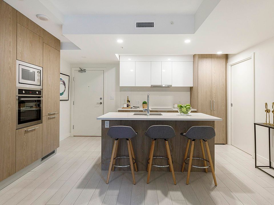 A modern Jr. 2 bedroom home located in the heart of Mount Pleasant in "The Independent"by RIZE and Acton Ostry Architects. A unique 20,000 ft.² backyard is situated on the 3rd floor rooftop and features landscaped seating areas, surrounded by colourful balcony railings & varied brickwork. This level is not only home to the aforementioned but also first class amenities and unit 301. The residence has A/C and 8'5 floor to ceiling windows. Open-concept kitchen features beautiful modern cabinetry, bright white quartz countertops and integrated appliances. The bedrooms are separated by stunning floor to ceiling wardrobes and cabinetry. Off the living room is a 121 ft.² private outdoor entertaining patio. Notable amenities are a dog wash station, fitness centre, party room and guest suite.