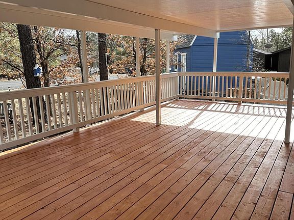 Cozy living room with a wood burning fireplace Large kitchen with soooo much storage. There is an island a bar and dining area. Inside laundry comes complete with a washer and dryer and extra fridge.Large master with two closets and master bath features a double vanity, garden tub and separate shower and a custom built office off of the master. Two nice guest bedrooms. The deck has a brand new 14X28 Ft cover with new flooring and railing.The back yard is fenced in for the pets and kids. Newer 20x10 ATV garage with must have extra storage. There is also an RV hookup. Central Air This beautiful cabin comes fully furnished Best deal in Munds Park.