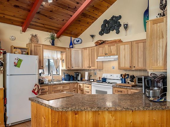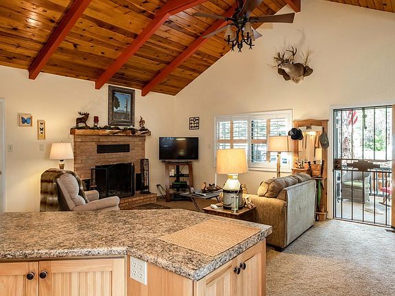 ADORABLE 3BR 2BA Open Plan: VAULTED RECENTLY CLEANED AND OILED T & G Ceilings in LR; Huge Wood-Burning Masonry Fireplace w/Handmade Wood Mantle ; Kitchen w/spacious Counters and Newer Wood Cabinets; Fridge conveys;DR/LR/Kitch lamp stays over table;2 BR share a Bath w/All New Tile, Corian Counter, LG mirror, beautiful ceramic tile New Exhaust Fan and Wall Heater. The DEN/OFFICE has a new door which leads outside; then the Gorgeous Family Room (or Lg Master Suite) with a 3/4 Bath. HUGE Mud/Laundry Room w/ tile floor exits out on to a New Trex Deck in Private Fenced Back Yard w 10X10 shed & patio cover for picnic table. Trex Frnt Deck with T&G Ceiling; Rebuilt Railing and Gate, House Painted in 2015. Ext lights stay w/timer. Awesome Landscaping Fr & Back. A MUST SEE!