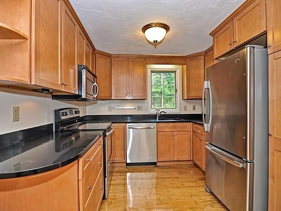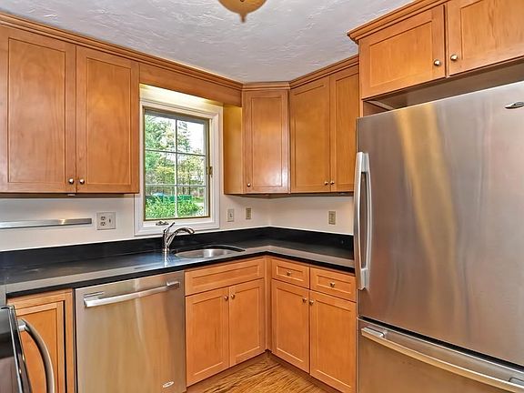 Welcome to Norton's Village Estates as you enter the long driveway leading to this wonderful 2 bedroom townhouse offering fabulous updated kitchen with maple cabinets, quartz countertops and stainless steel appliances. The open floor plan features a living and dining room combination with slider leading to a private rear deck. First floor half bath and foyer closet. Upstairs has two large bedrooms, master bedroom has a walk in closet! The main bath has a shower/tub and brand new tile flooring. Bonus finished walkout basement has a GREAT family room with built in shelving and a second slider leading to wooded backyard for relaxing on weekends. Laundry room and Plenty of storage in the basement too. The condo unit interior was just freshly painted! This wonderful 3 levels of living condo is a great complex, includes 2 parking spaces and conveniently located close to highway access, restaurants and shopping. BEST OF BOTH WORLDS-QUIET LOCATION & CONVENIENCE with COMFORTABLE SETTING!!
