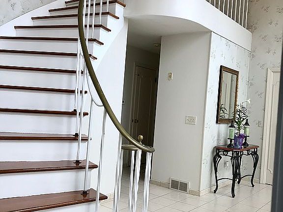 Quality built Two story with 4 bedrooms, 3.5 baths, stunning 2-story foyer w/chandelier and open staircase, huge living room and dining room, large eat-in kitchen, gas fireplace, family room, sun room, 1st floor laundry, master bedroom suite, finished basement approx. over 1600 sq. ft. includes rec. room w/wet bar, exercise room, full bath, sauna, large office, garage is heated, large raised patio with brick charcoal grill, central AC with air handler plus hot water boiler for radiant heat throughout