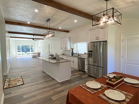 Quality Brick home just newly remodeled, located between Paris and Beautiful Kentucky Lake, New Kitchen appliances (duel fuel stove), cabinets, large pantry, two new bathrooms, central gas heat and air in August 2021, Spacious Living and dining area, new flooring, light fixtures. Located on 2.6+- acres, great for garden or livestock, property joins Elkhorn Road and Highway 79 North( four lane Highway) with good commercial potential. Nice cover front and rear porches. Large detached two car garage, carport, and workshop area with electric. Relax on your covered porch and watch the wildlife. Don't miss this opportunity to enjoy moving into a home like new.