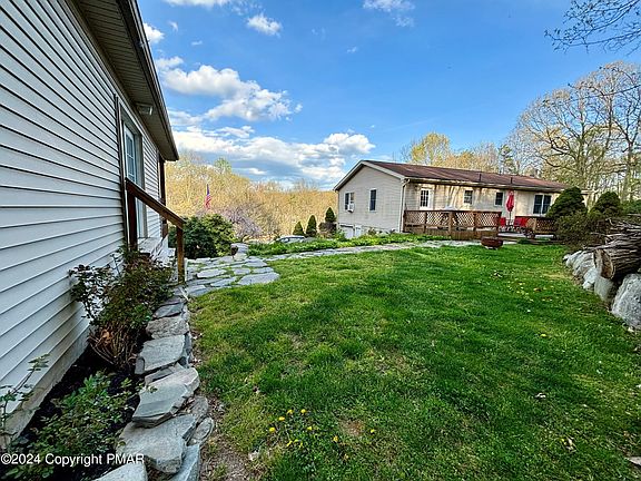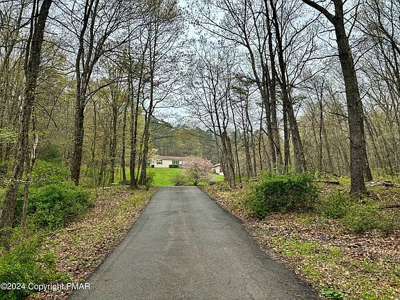 NO DEVELOPMENT NO DUES!! Home has three bedrooms and 2 bathrooms. Beautiful paved driveway in a secluded quiet setting. LOW TAXES. Detached garage is an oversized 2 car with plenty of electrical for all your needs. One car garage on the lower level of the home. Generator hook up installed. Economical oil hot water heat. Detached garage has electric heat or propane. Close to Routes 80, 33 and all Pocono Attractions!