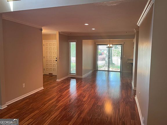 Gorgeous stepless living in an oversized duplex located near I-285, shops, and restaurants & across the street from Hammond Park (with playground, gym, basketball courts, etc). Home features a large, cathedral-ceiling great room with room for living/dining, a fireplace, and a sliding door to the private fenced backyard. Renovated kitchen with breakfast bar is open to an additional living/eating space and the large living room. Oversized master suite with updated bathroom includes two sinks, a walk-in shower and a large closet. The second bedroom features a wall of closets and a secondary wall of shelving. Full second bathroom with shower/tub. The laundry currently has a dryer that can be removed or stay. The oversized garage has room for two cars, bonus storage shelving and access to an attic space. The gorgeous, private backyard is fully fenced with a patio and wooded views. The property is located in a quiet fee simple neighborhood with quick access to Sandy Springs amenities. Landscaping and bug control to be paid by the owner. $ 75 application fee per adult applying to cover the cost of credit and criminal reports. Copyright Georgia MLS. All rights reserved. Information is deemed reliable but not guaranteed.