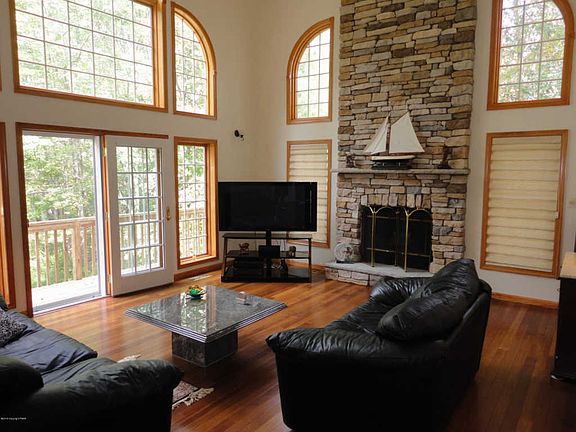 An absolutely exquisite residency within this upscale community of Country Club of the Poconos. Entering the home you will be awed by the stunning Brazilian teak wood flooring throughout most of the home. A stunning two story family room w/ floor to ceiling stone fireplace invites you in to relax. Enjoy preparing gourmet dinners in the state of the art kitchen w/ granite counters and stainless steel viking appliances. A formal dining room & well appointed office/den rounds out the first floor. The second floor offers a large master bedroom w/ tray ceilings & newly renovated spa-like bath retreat. two more generous sized bedrooms & well appointed hall bath complete the second level. A full walkout basement & two car garage allows for plenty of storage