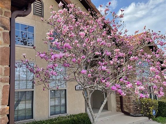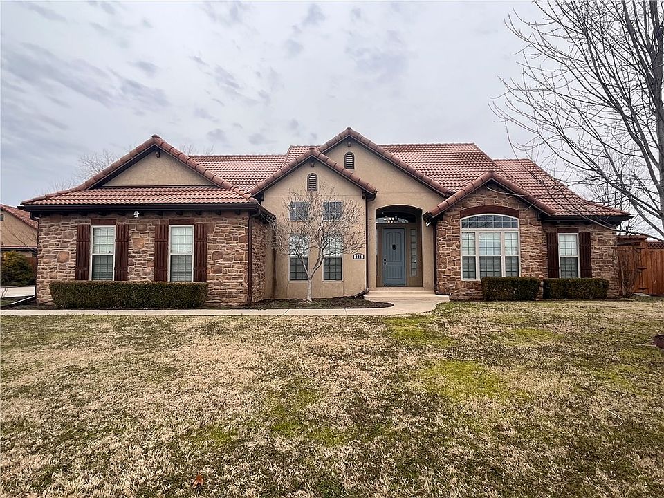 Not your cookie cutter in this neighborhood! Unique rock & stucco home with concrete tiled roof = low maintenance! Large, open living space with tall ceilings is an entertainer's dream. Your eyes are drawn to the wood beams in the formal dining room, living room hosts a gas fireplace, and you can dine-in the gourmet kitchen or have a seat at the bar. Large windows invite your gaze to the patio space complete with outdoor kitchen, seating under a pergola, a wood burning fireplace & a hot tub. Professional landscaping may not look like much now but wait until Spring! Two owner suites, one on each end of the house, great for guests/college student/in-laws. All appliances convey including washer & dryer. Whole house has new paint. Blinds & Luxury plank vinyl flooring are less than a year old. Less than half a mile off of Hwy 412 makes for an easy commute to anything in NWA! Close to parks, local festivals, restaurants & shopping.
