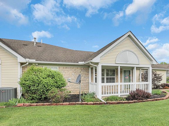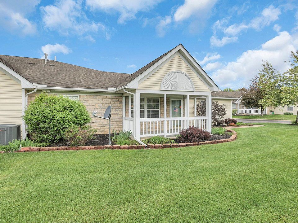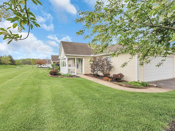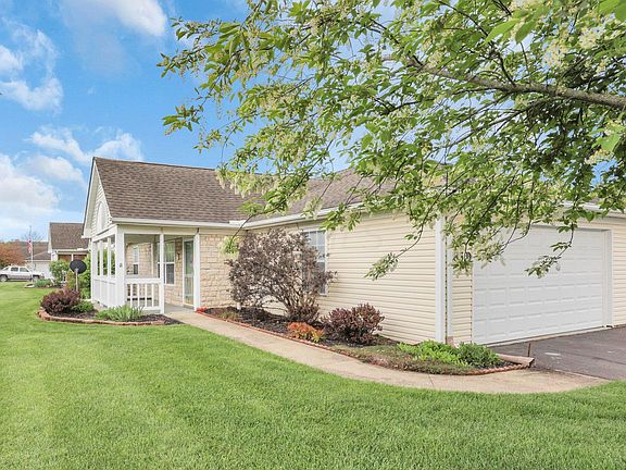 One story condo with 2 car attached garage and covered front porch in North Newark. Living room open to kitchen and dining. Kitchen offers range, microwave, dishwasher and refrigerator. Two bedrooms two full baths. Master with walk in closet. First floor laundry.