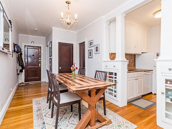 This is a one bedroom in the elevator building, Heat and hot water included. on the third floor, excellent light, Fully applianced kitchen, the dining area off the kitchen, very large front facing living room with the fireplace (can not be used but looks very pretty) tall ceilings, hardwood floors throughout All windows were replaced less than two years ago. Several months old very high end LG dishwasher, the fridge three years old, gas cooking, above the range hood/microwave, repainted less than two years ago, tiled bathroom, tub reglazed one and a half year ago. Extra Storage in the basement, bike room in the basement, laundry in the building. An excellent very well managed condo association. All hallways were renovated two years ago. (Reference #139455)