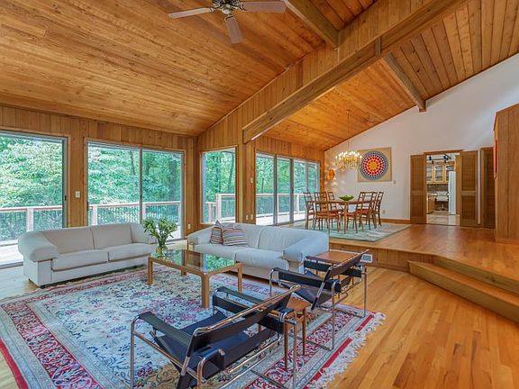 Incredible opportunity to own a Mid-Century modern home located on one of Atlanta's most prestigious streets. This serene home sits on 2 private acres reminiscent of a mountain retreat. City living in close proximity to excellent private and public schools but has the feel of a secluded vacation haven. Home has soaring ceilings, hardwood floors, three stone fireplaces and lots of skylights throughout for natural light. Wrap around deck overlooking woods. Truly a hidden gem that has the potential for renovation or new home construction. The lower level is full of natural light throughout and has an extra room that could be a 5th bedroom with the addition of a closet. Home Sq ft 4701 +/- was determined through Matterport measurements. Please click on virtual tour link for Matterport self tour of home. . There is a drone link as well on FMLS #6751360.