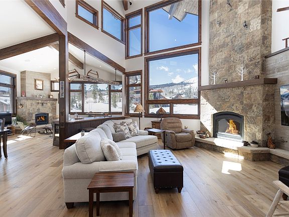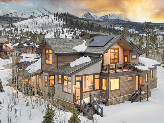 Abundant light and striking Gore Range views are captured in this recently constructed residence offering main floor living. Completed in 2023, this custom home was designed and built locally by BHH Partners and Spirit Builders. Engaging mountain modern finishes in neutral and warm tones crafted with clean lines offering a sense of timeless sophisticated simplicity. Intentional design and materials that offer a connection from the exterior to the interior with odes to the history of the valley. Taj Mahal natural quartzite counters, seeded glass backlit cabinets, triple glazed crackle tile, night time star ambient lighting, Thermador appliances and other interesting and fine finishes throughout. Upon arrival you will immediately feel that this residence moves away from the typical builder greys with a welcoming fresh and relaxing style. Outdoor spaces include a covered grill area, expansive sunset patio (with gas firepit) and a stargazing deck upstairs. Lifestyle features such as a Colorado room with an Elm wet bar and a 150-year-old tendon and mortise beam, custom sauna with outdoor access for temperature contrast and a patio that has hookups for a hot tub. The 800+SF garage is larger than some average 3-car garages with room for sports equipment, motorcycle parking, has built-in trash storage and a workbench ski-tuning area. The 7 KW solar panel array is owned (not leased) and provides for all the current owner's electrical use and charging of their electric vehicle. The front patio is oriented optimally to capture the dramatic sunsets and has a custom gas firepit from Breck Ironworks to keep everyone cozy into the evening hours while recollecting about your last run, bike ride or birdie put. With a captivating view from nearly every window, "High Camp Lodge" invites you to come make lasting memories in the Mountains.