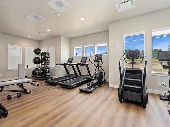 -- Gym, workspace, outdoor fireplace, patio