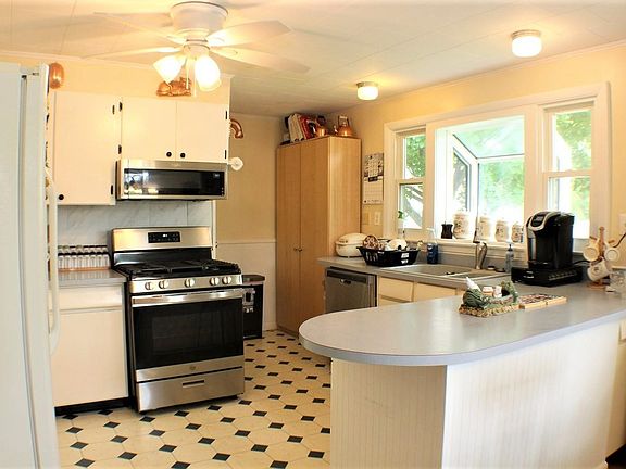 Nicely maintained Ranch style home with 2842 square feet of finished area, vinyl siding large deck and standing seam metal roof. Situated on High Street this wonderful home overlooks the Town of Bradford and has a large deck where you can relax and enjoy the view of the New Hampshire mountains. The spacious kitchen is equipped with new stainless-steel appliances and breakfast nook. The spacious dining room has is great for large gatherings. The living room is cozy and warm with a gas stove, abundant natural light, cathedral ceiling covered with tongue and groove pine that flows down to the wood fireplace and a very nice office/den just off the living room. Main floor laundry and Primary bedroom with walk-in closet and full bathroom round out the main floor. The walkout lower level has 2 large bedrooms, family room, 3/4-bathroom, utility room and lots of storage. Easy access to I-91 and VT Rt25. 35 minutes to Hanover NH. and Barre VT.