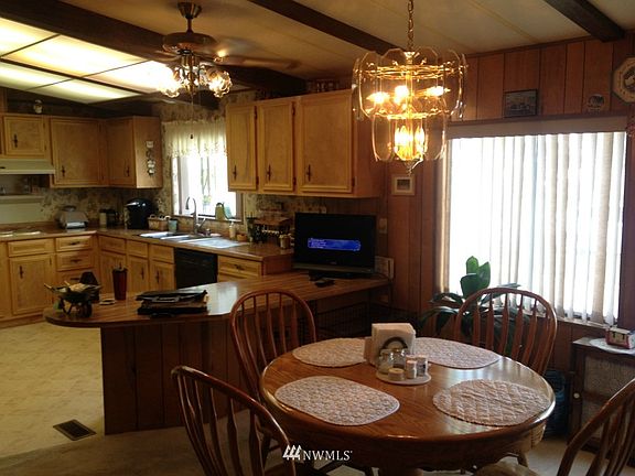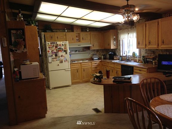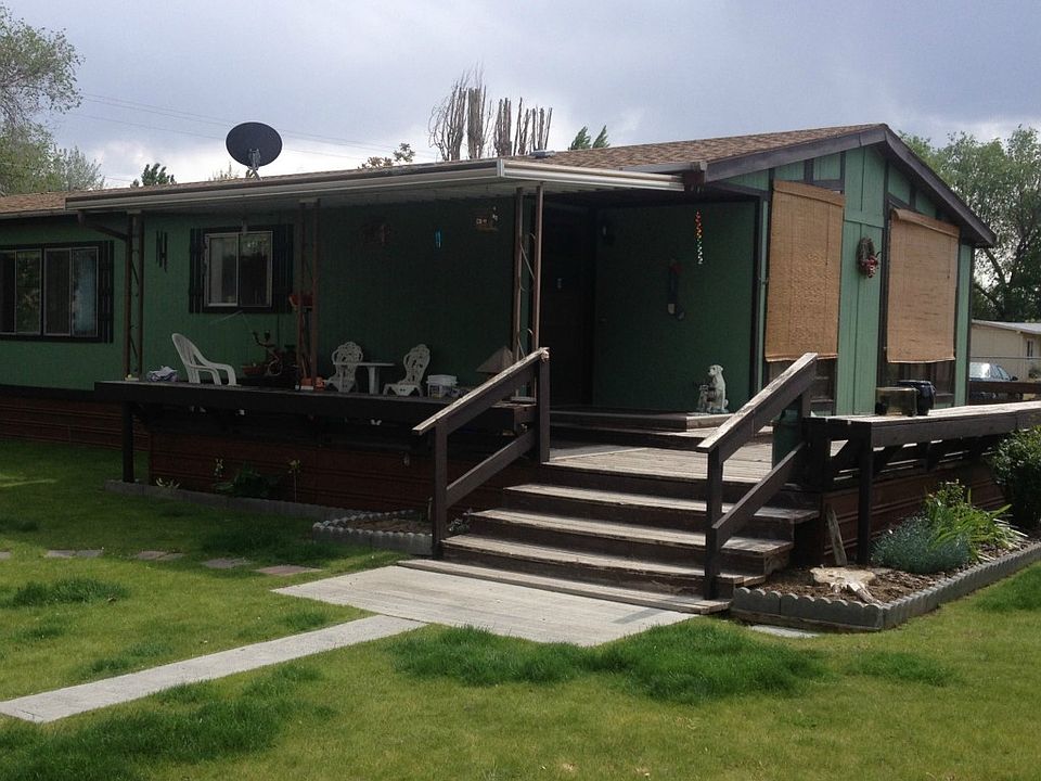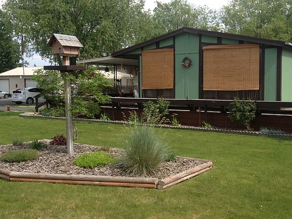 Beautifully maintained 1568 sq ft 2 bedroom 2 bath doublewide mfg home on approximately 3/4 of an acre fully fenced & gated. Recent new roof and exterior paint. Features large living/family room and spacious kitchen, extensive wrap around partially covered deck with benches. Large area for RV's with full RV hookup. 21'X 21' carport, 14'x40' shop/2 car garage with openers, large work area & finished room for ???. 24'x 10' garden shed. Mature landscape, lawn & underground sprinklers.