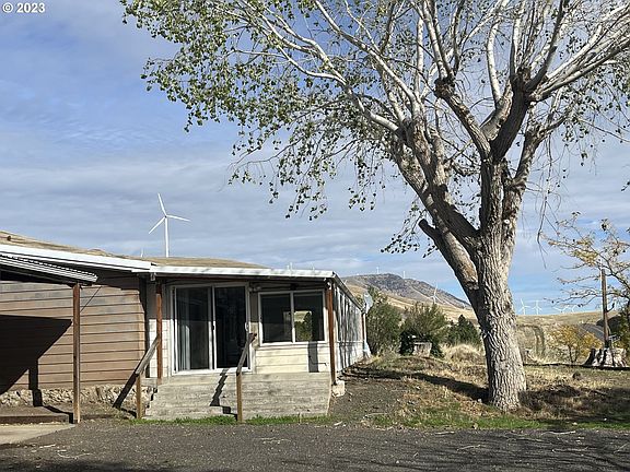 This 1981 MH, sits on 74 grassy hill acres. The home is spacious with an open floor plan and newer laminate flooring throughout. A 18 x 52 attached sun room that has a view of the Columbia River. Kitchen boasts a large pantry, eat at bar, that opens to the dining area. The primary en-suite bath has been remodeled, double sinks and a walk/wheel-in shower. Covered concrete back patio (14x66) is very secluded with a hot tub and cover. Several outbuildings; 36 x 96, 36 x 36, a detached garage 24 x 36 with a 3 bay covered carport. You will feel like you are on top of the world. Private and secluded location, call today to take a look.