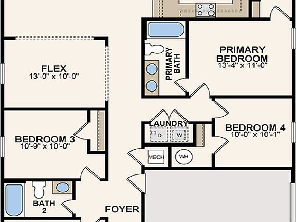 1612 A NEW one story, 2 car garage home! One level living includes a great room open to the kitchen as well as a flex space room. There are 4 bedrooms and 2 full bathrooms. Master features a walk in closet dual sinks in the bathroom. Laundry closet is in the hall.