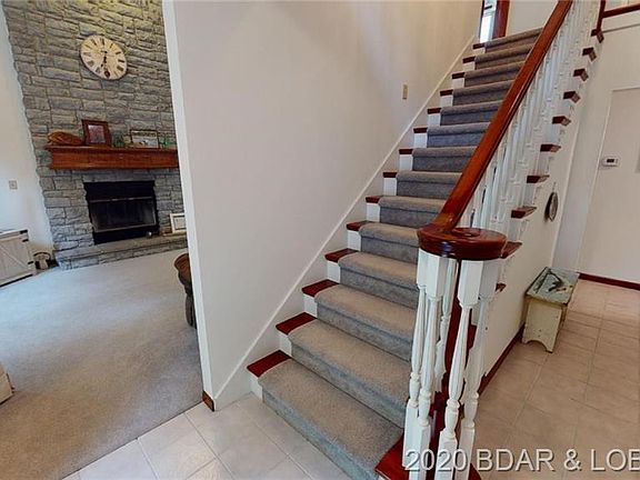 Well cared for lake home-clean as can be! Stunning view in a deep water setting- with large dock envelope. (2 well dock conveys)Gentle driveway leading to a 2 car garage-plenty of parking for all your guests.Upon entering the home you are greeted with soaring ceilings,stone FP & walls of windows. Excellent floorplan w/main level living-spacious Master bedrm & Bath that leads to an open deck. The kitchen area leads to an eat in dining area or rm for a formal dining area. Upper level offers 2 bedrms w/ jack-n-jill bath, desk area and a huge storage area. The lower level offers a great entertaining area w/huge family rm, kitchen/wet-bar, large bedrm and bonus room- for games, craft rm,and bedrm- great for bunk room! Furnishings are available and possible turn-key. This home was custom built- so there are so many additional features one must see to appreciate. Blacktop to the home, with subd covenants w/ central water & sewer. Storage area under the home as well- great for water toys.