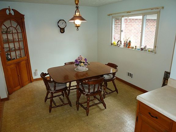 All brick ranch! Newer gutters and windows! Brick front walk leads to enclosed front porch! Double wide driveway with RV or trailer pad! Spacious kitchen with knotty pine cabinets! Eat-in area plus formal dining room with built-in corner cabinet! Partially finished basement with knotty pine walls! Furnace approx 12 years old! Central vacuum!