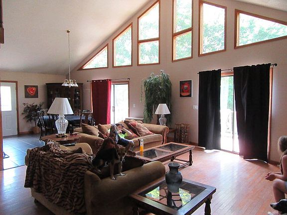 Great home/cabin located minutes from town. Perfect location for family with children in local schools and ALSO perfect location for a rental cabin, close to all local attractions. Open floor plan and large master. 3 acres with running creek.