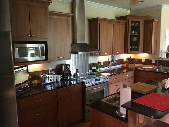 Contemporary Home 3/2 on the 17th green, Premium lot with SE open view. The home has: Gas fireplace Laminate floors Granite counters High-end appliances Bar sink Extra kitchen cupboards Glass guest shower Jacuzzi Tub Soft water Room darkening shades with transoms Enclosed screen porch Tiled porch and entry Fenced yard Gutters Mature pear & peach tree Glass & Screen front door Special lighting package Washer and Dryer Home Shield Warranty Available