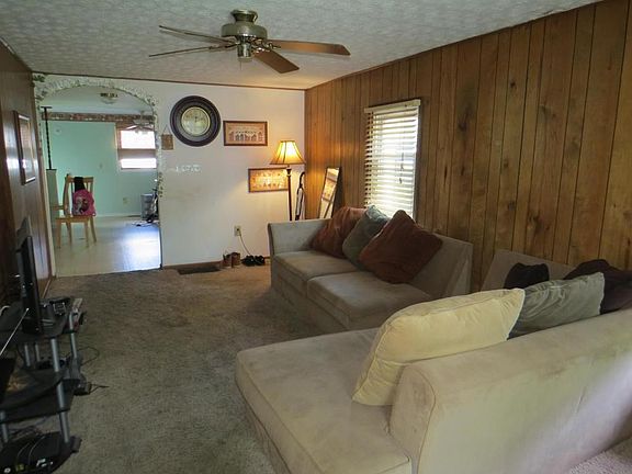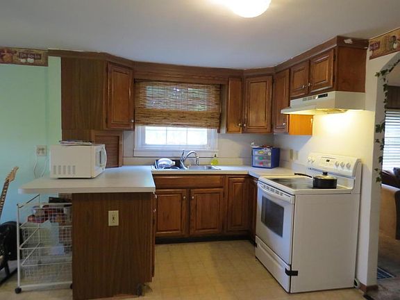 Situated on.62 acres of land (3 parcels) is where you will find this cozy 2 Bedroom ranch home! Nice sized Living Room opens into the Kitchen w/Breakfast bar, eating space & desk area. Remodeled Full Bath! Plenty of storage space between the full basement & 3 car detached garage w/covered patio! Plenty of room for outdoor activities or relax on the covered front porch!