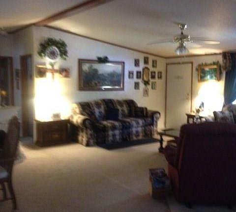 Well maintained 3 Bedroom, 2 bath doublewide with added porch and single car garage. Open floor plan with living room, dining room and kitchen area open with easy traffic flow in the home. Split bedroom plan with the 2 guest rooms and hall bath on the right side of home with the master bedroom and bath on the left side.