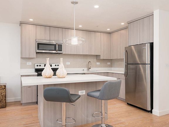 Spacious Apartment with Office Nook and Views: Move-In Bonus!. 285 Lee St. #203 is a large corner 1 bedroom, 1 bathroom apartment with an office nook and balcony in Oakland?s Adams Point neighborhood. This home gets a lot of natural light and has an open floor plan with a kitchen island. The unit has recently been beautifully remodeled, so you can be the first to live in this spacious apartment in a great neighborhood. This is truly a sophisticated remodel, complete with Karndean floors; Frigidaire and Bosch stainless steel appliances; white quartz countertops; sleek modern fixtures and lighting; built-in closet organizers; and cabinets created locally by Treasure Island Woodworks. The spacious bedroom has a large walk-in closet with built-in closet organizers and the full bathroom has a floating vanity and a shower over a tub. 285 Lee Street is plugged in, in tune with and catering to today's needs, providing a pet washing station, bike storage, and multiple laundry rooms. Street parking is available. Homes are equipped with USB ports plus state-of-the-art cost-effective solutions including energy-efficient appliances, Nest thermostat systems, LED light fixtures, and water-saving toilets. The building is wired for cable TV and Webpass high-speed internet. Enjoy a central location situated in Adams Point, one of Oakland's most desirable neighborhoods. 285 Lee Street is located on the northern shore of Lake Merritt and is surrounded by some of Oakland's most vibrant neighborhoods. The nearby Grand Lake Saturday Farmers Market is widely acclaimed as the best farmers' market in the East Bay. Close to downtown Oakland and the Grand Lake district, there are numerous retail businesses nearby including Whole Foods is less than a half mile away. Unit Features: ? 1 bedroom plus office nook, 1 bathroom ? 641 sq. ft. per developer ? Luxuriously remodeled and updated ? Open living/dining area ? Large balcony ? Modern kitchen with white quartz countertops and breakfast bar; custom backsplash; stainless steel appliances including Frigidaire refrigerator, microwave, and stove/oven and Bosch dishwasher; custom cabinets by Treasure Island Woodworks ? Large walk-in closet ? Upscale bathroom with shower over tub, floating vanity, and water-saving toilet ? Beautiful flooring by Karndean ? USB outlets ? Ceiling fan ? High-end LED light fixtures ? Double-paned windows ? Nest thermostat system with Honeywell heating in bedrooms ? Leased parking available for an additional $175 per month ? Pets considered on an individual basis with $50 pet rent and additional deposit ? 1 month free rent! (The price listed is the average rent over a 12-month period; 30 days will be $0 and the remaining monthly rent will be $2950.) ? Move-in bonus: 1 free year Webpass internet Building Features: ? Remodeled exterior and interior? Lockers for package receipt? Telephone entry system compatible with cell phones? Laundry rooms on each floor with 2 shared washers and dryers? Trash chutes on each floor? Pet bathing station? Elevator? Webpass high-speed internet? Cable-ready? Bike storage available? Close to shopping, cafes, restaurants, and groceries with a Walk Score of 87? Easy access to freeways and public transportation Photos are of similar units. 5