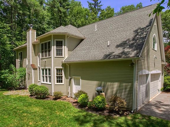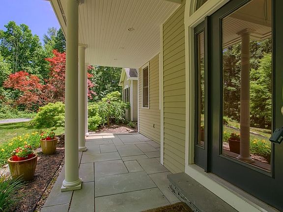 Privately sited, custom Colonial with a contemporary flair on 4 acres abutting conservation land. Features dramatic foyer with soaring ceiling and beautiful balcony. Open kitchen with 18' ceiling, Great Room with a floor to ceiling field stone fireplace. Wood floors throughout main level, two staircases, five Bedrooms and four full baths allowing for flexibility. Quality finishes, paneled appliances, cherry and solid surface kitchen with stone back splash. Dacor gas stove top and wall oven. Master suite with a full bath, his/her closets, coffered ceiling and much more.