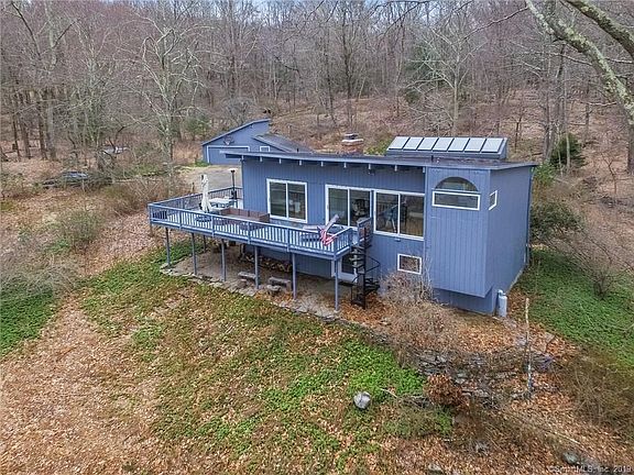 High above the Connecticut river you will find this true oasis which is anything but usual! This custom built contemporary offers terrific views of the Connecticut River, almost 17 acres of privacy & a post-modern design worthy of the term extraordinary! From the full glass family room to the look-out loft, you will be amazed with it's true contemporary charm! As you drive-up the long winding driveway your curiosity piques as the world fades away. The main level includes the kitchen & open dining room with strategically located built-ins, the full glass family room, main level bedroom & full bath. As you walk-up to the second level the dream begins to come-true as you enter the open & spacious living room with it's post-modern full length roof window with retractable shade, banks of sliders that open to a full length upper level wrap around deck overlooking the Connecticut River, fireplace with inserted wood stove, built-ins & look-out loft adding extra height to the view. The upper level also features the master bedroom that opens to the wrap around deck with that view via sliders, additional bedroom & full bath. The grounds offer open spaces with wonderful blooms, a patio & terrace, three car garage (two enclosed ports & an attached carport) with loft storage above & plenty of space to entertain or just roam freely! Conveniently located between NYC & Boston. Your special getaway awaits!