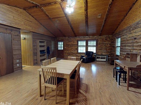 This REAL LOG CABIN is the perfect weekend retreat or retirement home, featuring stunning wood vaulted ceiling in the large great room and the cozy log cabin feel throughout 3 bedrooms and 2 full bathrooms. Enjoy relaxing days on both covered porches with plenty of space for BBQ's, horseshoes, boats and water toys on the 3/4 acre corner lot with minimal upkeep. 2 Bookcases in master bedroom & 1 bookcase in great room stay with house. Live you LAKE LIFE DREAM in this original log cabin home making memories.
