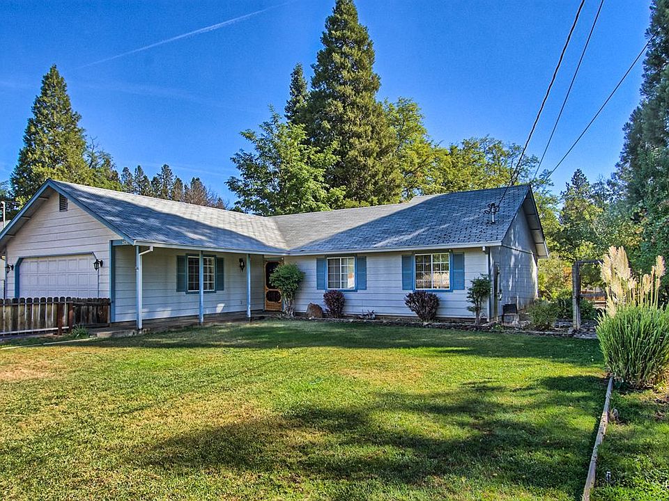 It is all here: a wish list to make your dream home a reality ! Single level, attached two car garage, fenced front yard & two fenced rear yard areas. Deeded rear access offers great recreational parking potential, without cluttering your front curb appeal. City Water PLUS irrigation well water (12 gpm). Open floor plan: Kitchen w/ island / breakfast bar opens to vaulted great room for dining & seating at raised hearth wood stove. Great room opens to a HUGE 24 x 17.6 living room w/ vaulted ceiling, recessed lighting, slider to a shady patio french door opening to sunny decking. From the kitchen island, chat w/family / guests sitting in great room & living room. Master bedroom features it's own access to read decking & enjoys a picture window view of landscaped yard. All bedrooms are a comfortable size w/ ample closet space. Storage in linen, coat & pantry closets. Deep garage w/ workbench and storage, direct access to kitchen and a full size laundry closet. Rear grounds include the pump house, storage shed, rock work and rear access. Enjoy side /rear grounds w/ mature landscaping and fruit trees; separately fenced. Check out a home to meet your wish list AND your budget.