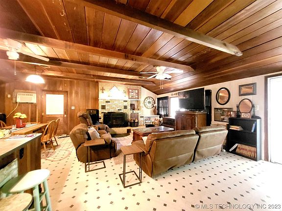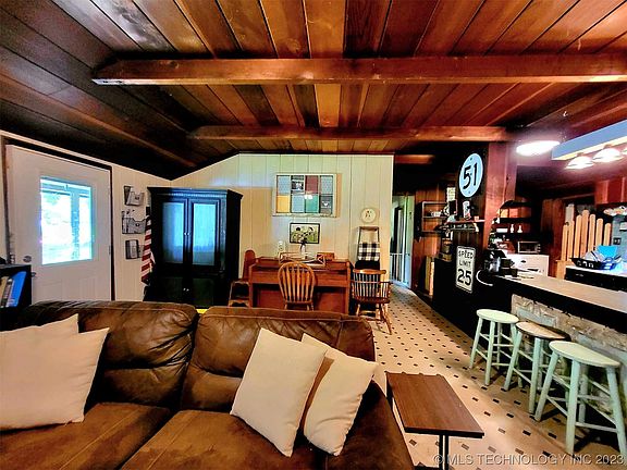 4 bedroom, 2 bath home on just under a half acre in Jennings. The seller believes the square footage is approximately 1980 with the addition of the primary bedroom/wbath and the laundry room. The home has a real cabin sense with the log siding on exterior and the living room has wood ceiling and beams giving it a real rustic feel. A wood burning fireplace An antique kitchen sink and hall bathroom has an old barber sink. Large primary suite Newer metal roof, plumbing, flooring and 90% newer vinyl UV coated windows. The entire front of the home has an inviting front covered porch. The property is a corner lot with a 12x35 tiny home, also be used as a mother-in-law cabin, it does not have a kitchen stove but does have a sink and refrigerator. Storage shed The Property is fenced and cross fenced for an animal run area Mature pecan and various types of trees circling the property, also has 3 years of producing grapevine Could be an income producing property Just 2.75 miles south of Highway 412 and centrally located between Tulsa and Stillwater, the commute is about 35 minutes to each. 20 minutes to Lake Keystone in Mannford