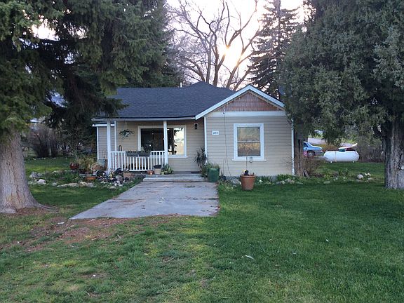 Get inside this cute cottage with professionally landscaped yard. Tons of mature trees, huge garden spot, outbuildings, full automatic sprinklers, and a front porch. Huge .75 acre corner lot! Unfinished basement (455 SqFt.) has built-in shelving for all the storage you need. Animals welcome on this property with animal rights. Wood burning stove, new insulation, new siding, newer roof and a brand new 1000 gallon septic tank, installed in December. 1420 total SqFt.