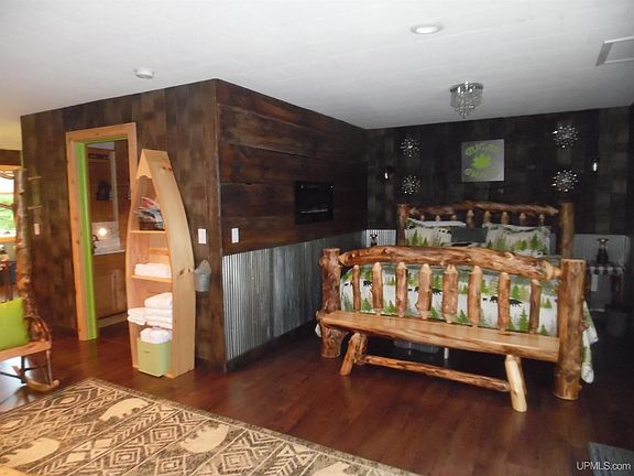 PICTURED ROCKS AIR B&B. Wonderful Upper Peninsula getaway resting on 6.24 acres down a year round private road. Less than 3 minutes away to the public access to Round Lake, this property is also minutes away from other other inland lakes like Lake Stella, Skeels Lake, Stoner Lake and Pole Creek Lake(plus others). This property offers a very open concept theme with all the necessities on 1 story. The spacious yard is perfect for outdoor games, late night fires, and backyard barbecues. This cottage comes fully furnished so that you can move in and enjoy your new property right away! Round Lake is a 475-acre all sports lake that is located mostly in Delta County, Michigan with a little portion in Alger county in the Hiawatha National Forest with a variety of fishing species and hard sand bottom lake. Great hunting in the area too. THIS AIR B&B gets ALL 5 STAR RATINGS and comes with all the custom log furnishings and appliances which include a washer and dryer! 5.0 stars on 16 reviews on Airbnb and 5.0 stars on VRBO on 1 review. It was just listed on VRBO this year.