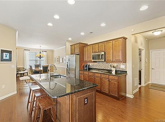 Start your Retirement in Style with this well appointed Monterey Model, boasting lots of curb appeal! Wood Floors Throughout all the Living Areas Plus the Den/Office; Bedrooms are covered in Neutral Carpet, Plenty of Deco Moldings, And Open Floor Plan. The Gourmet Kitchen is Totally Inviting With 42" Wood Cabinets, Pull Outs, Granite Counter Tops, Tiled Back Splash, GE Profile Stainless Steel Appliance Package, Gas Cook Top W/5 Burners, Double Ovens and The Island Offers Extra Bar Seating. The Eating Area is Located Just off the Open Concept Kitchen. Formal Dining Room for Those Over the Top Parties, Great Room for Relaxing and Entertaining. Master Suite with Bump Out Windows, WIC, Full Master Bath High Height Double Vanity, Stall Shower w Seat. 2nd Bedroom for Guests along with A Full 2nd Bath. Some Extra Amenities are Numerous Recessed Lights, Ceiling Light Fans, Security System and Custom Window Treatments. 2 Car Garage with Walk UpStorage and Don't Miss the Back Yard Deck! All This Waiting for the next Owner to Enjoy!