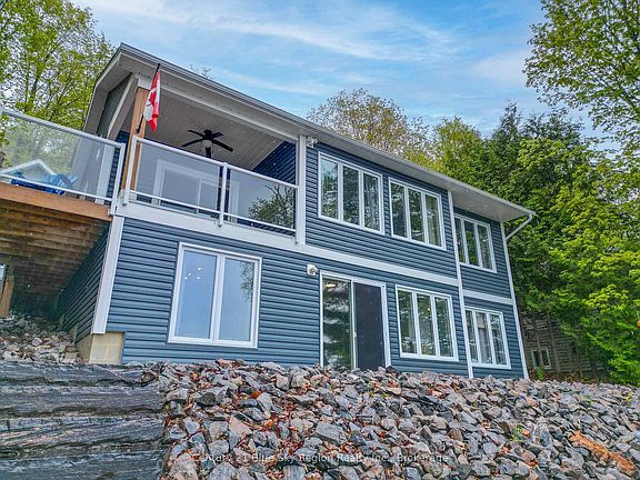 Discover your dream home nestled along the serene shores of Trout Lake.This beautiful 2,000sq.ft home offers a harmonious blend of modern comfort and natural beauty,making it the perfect retreat for those seeking a peaceful lakeside lifestyle.As you step inside, you're greeted by a large, welcoming foyer that sets the tone for the rest of the home.The living room, with its wall of windows facing the water, captures the stunning views of Trout Lake.Enter into the kitchen equipped with modern appliances and tasteful designs with Granite countertops.The kitchen seamlessly connects to a 220sq.ft.wrap-around deck,offering an ideal space for outdoor dining and entertaining while enjoying the picturesque waterfront views.Retreat to the primary bedroom, featuring a spacious walk-in closet and a luxurious ensuite with a walk-in shower and double sink with granite countertop. There is also a 2 piece bathroom on the main floor.The lower level of the home boasts a beautifully finished basement with in-floor heating,perfect for extra warmth during the cooler months.This area includes a convenient walk-out, allowing easy access to the outdoor spaces.Two additional bedrooms, each with ample closet space, offer flexibility for family, guests, or office space.Outside, a large deck sits beside the water, perfect for leisurely afternoons or hosting gatherings.Enjoy direct access to the lake with your own 50-foot dock, ideal for boating and fishing enthusiasts.Seven newly planted trees and beautiful rock landscaping lead you down to the water and a designated fire pit area, creating a picturesque setting for outdoor enjoyment.Additional features include a shed with hydro offering extra storage solutions, wired generator that services the whole house and a detached single-car garage with a loft-style bunkie, perfect for guests or extra storage.This property offers a unique blend of tranquility and convenience, with updates throughout.Start making lasting memories today!