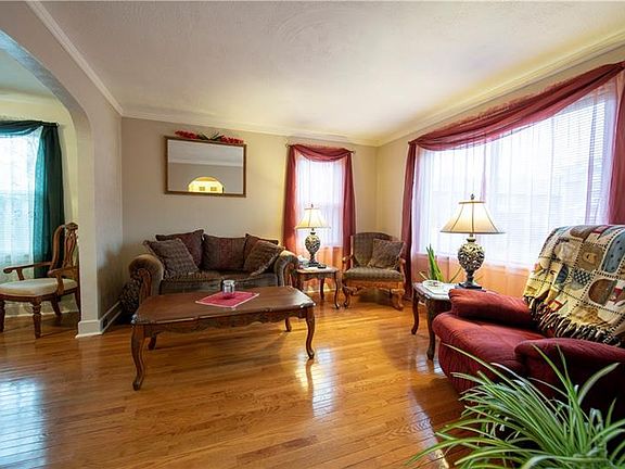 Well maintained 2 story with a finished basement space! Central A/C was added in 2016 along with a new furnace. Windows were replaced along with all new exterior gas lines and meter. Hardwood floors were refinished and a fresh coat of paint was added to the rooms. Each bedroom has a generously sized closet. Spacious full bath is located on 2nd level. Original hand rail, solid wood interior doors and door knobs give the home its charm as it was built in the 1920's. Formal dining room is decorated with tasteful crown molding. Plenty of cabinet space is offered in the kitchen along with a breakfast bar. One of the highlights of the home is the sunroom addition that features a hot tub and is included in the sale. Plenty of natural light is offered in the sunroom to help keep your plants thriving and new water resilient laminate flooring was just installed. Walk out the back door onto the back deck and enjoy the wooded view and completely fenced in backyard. Large storage shed is included.
