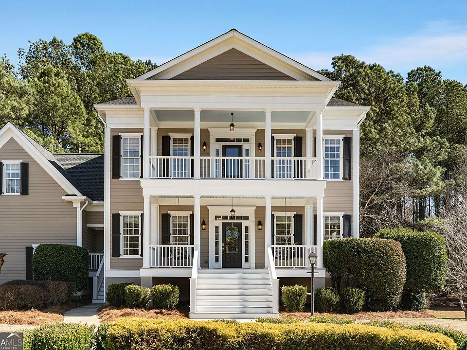 CLASSIC HIGHGROVE HOME WITH DOUBLE CHARLESTON STYLE FRONT PORCHES, FULL BASEMENT, AND PEBBLETEC POOL AND SPA! With 10 foot ceilings and hardwood floors throughout, this house is the perfect place to call home! The inviting front porch is the perfect spot for morning coffee or afternoon cocktails! Inside, the front stairhall is flanked by a dining room & living room/study, with a separate home office nook between the family room and living room. Large kitchen has granite counters & custom cabinetry open to light-filled breakfast room and family room with built-in bookcases & fireplace. Off the family room is access to a fabulous entertaining deck, leading to a private backyard anchored by an amazing Pebbletec saltwater pool, spa, & waterfall - outdoor living at it's best! The owner's suite has a wall of windows overlooking the pool & wooded yard and owner's bath has double vanities, spa tub & large walk in closet. 3 generously sized bedrooms, each with an en suite bathroom, door to upper level front porch, and a quaint study/play area with built-in bookcases and chalkboard wall complete the 2nd floor. The terrace level includes a large family room, full bath, & abundant storage with room to grow. This outstanding home in sought after swim/tennis community is in such a convenient location! Youall find great dining & entertainment options within 10 minutes in any direction! Golf club memberships available, which provide access to multiple local golf courses. With access to Peachtree Cityas 100+ mile cart path system, award-winning Starras Mill schools, and conveniently located to Piedmont Hospital, Trilith Studios, and Atlanta Airport, this is the PERFECT place to call home!