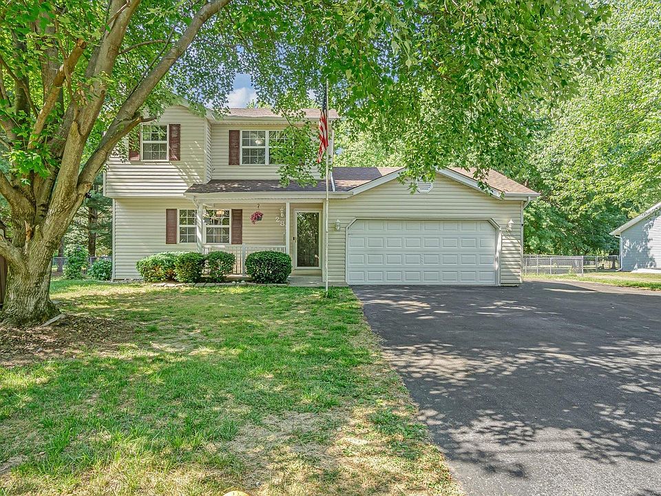 Looking for a cozy 2 story home with finished basement and 2 car garage? This house sits on a .72 acre fenced, tree-lined lot. When you enter the home you are greeted with nice sized living room with wood burning fireplace. The Newly Painted kitchen has ample cabinet space and room for a kitchen table. There is also a full bathroom on the main floor. The upper level has 3 bedrooms With New Carpet, and a full bathroom. The master bedroom has 2 closets (one being a walk in). The lower level has a finished family room area, bonus room and laundry room. The gorgeous back yard is level, fenced and has a great utility shed. Roof 2015/HVAC 2016/ water heater 2021 New Sewer lines and Septic tank in 2022, Upstairs Carpet and Main floor Flooring 2022, Walls painted 2023 Agent Related