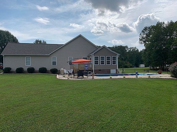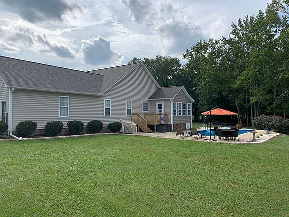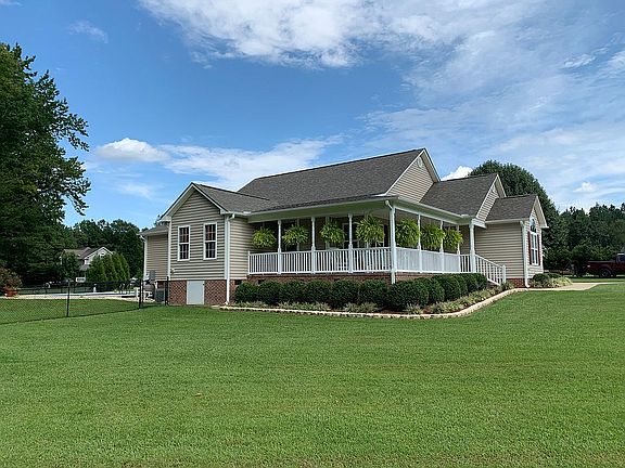 Large ranch floor plan with wrap around front porch. Large kitchen with granite counters and large center island. All bedrooms have walk-in closets. Sunroom overlooks in-ground pool and patio. Large fenced in backyard with storage building. Low taxes and no HOA dues. Located just minutes from the new Harris Teeter and coming soon Publix! 2.5% to buyers agent.